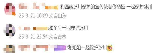 很多网友表示要和佟丽娅一同守护冰川。艺人投身环保公益并不罕见,像胡歌就在东方卫视《一路前往》节目中踏上环保之旅。保护自然环境任务艰巨,却也是人人可为之事,大家可以从身边小事做起,如少用塑料袋、多绿色出行,加入环保大军。